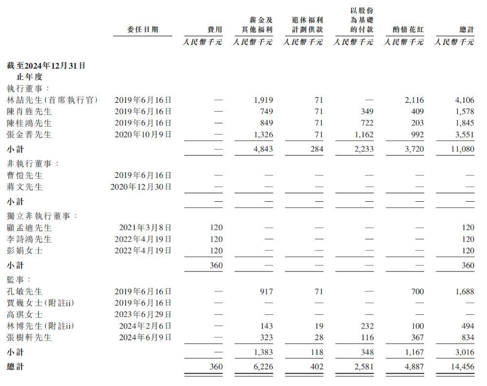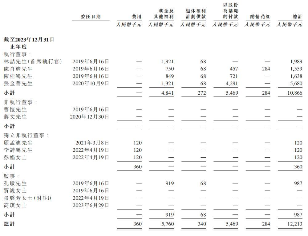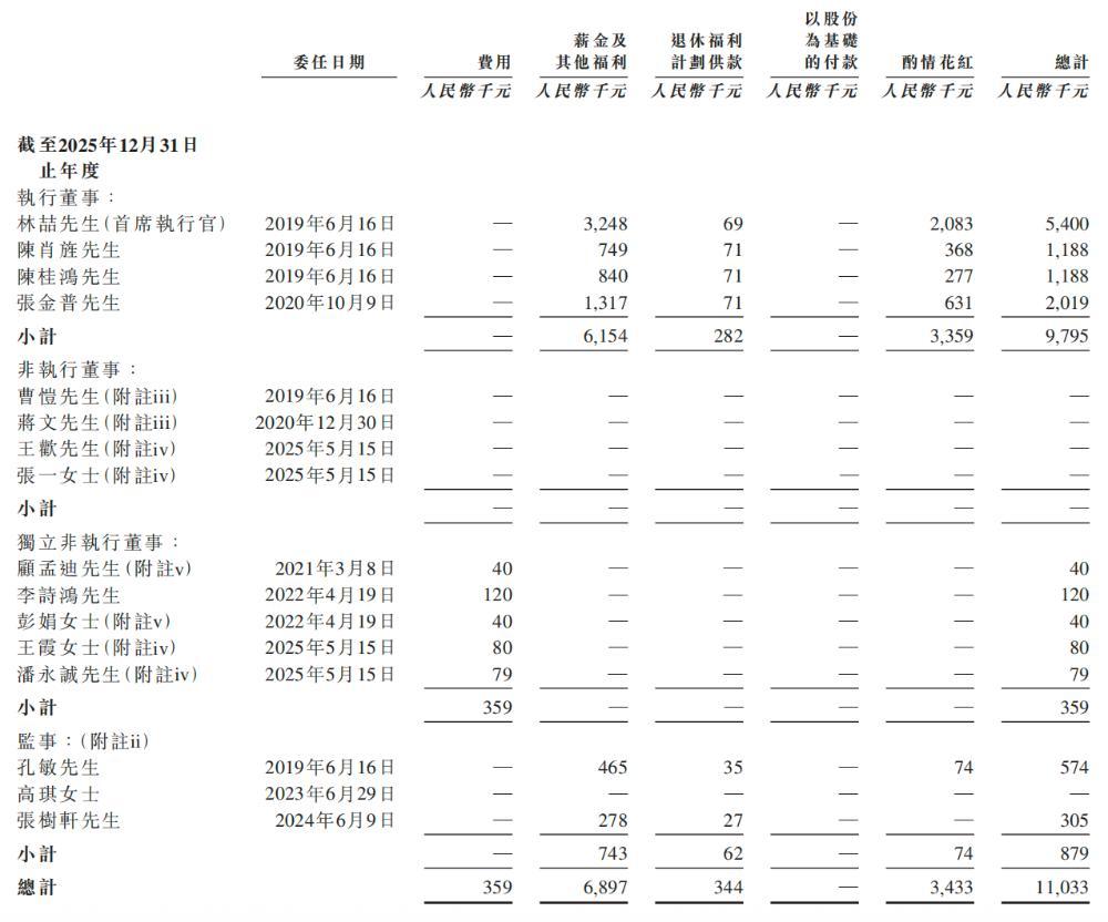 截至2023年、2024年及2025年12月31日止年度,商米科技已付或应付予获委任为公司董事、监事及首席执行官的人士的酬金(包括于成为其董事及监事前担任集团实体雇员/董事的酬金)详情如下: