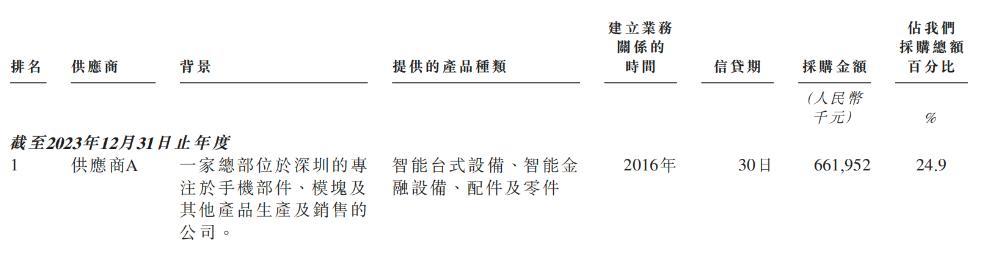 同期,于往绩记录期间商米科技自最大供应商的采购额分别为6.62亿元、8.55亿元及7.34亿元,分别占采购总额的24.9%、25.0%及18.7%。