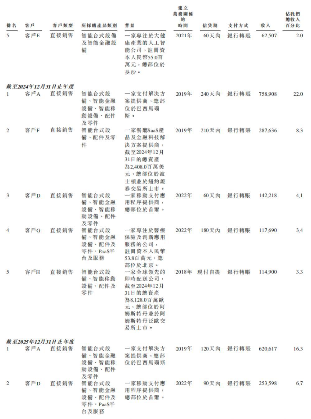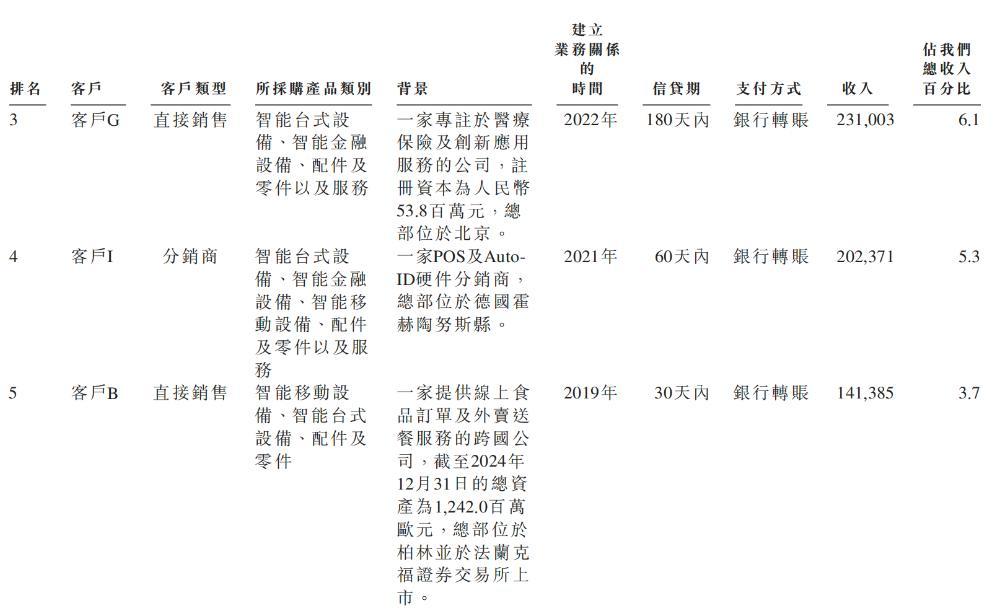 2023年、2024年、2025年,商米科技于往绩记录期间各年内来自前五大客户的收入合共分别为8.85亿元、14.21亿元、14.49亿元,分别占其收入的28.8%、41.1%、38.0%。